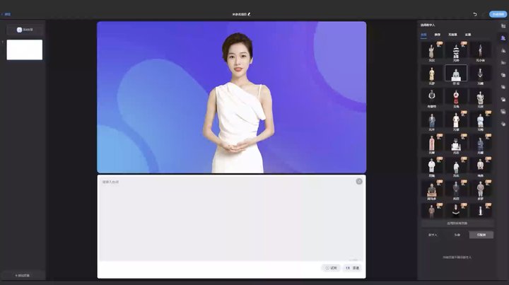 无需繁琐拍摄,无需花费上万元请模特。这里有六 十多个专业演员拍成的数字人,您只需敲敲键盘, 就能按您的文稿来说话