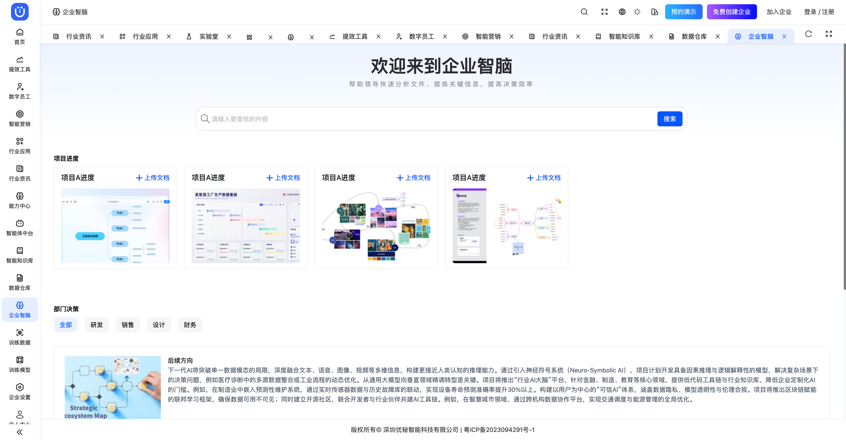 整合全平台能力,快速分析文件,提炼关键性,辅助企业管理层提高决策效率。