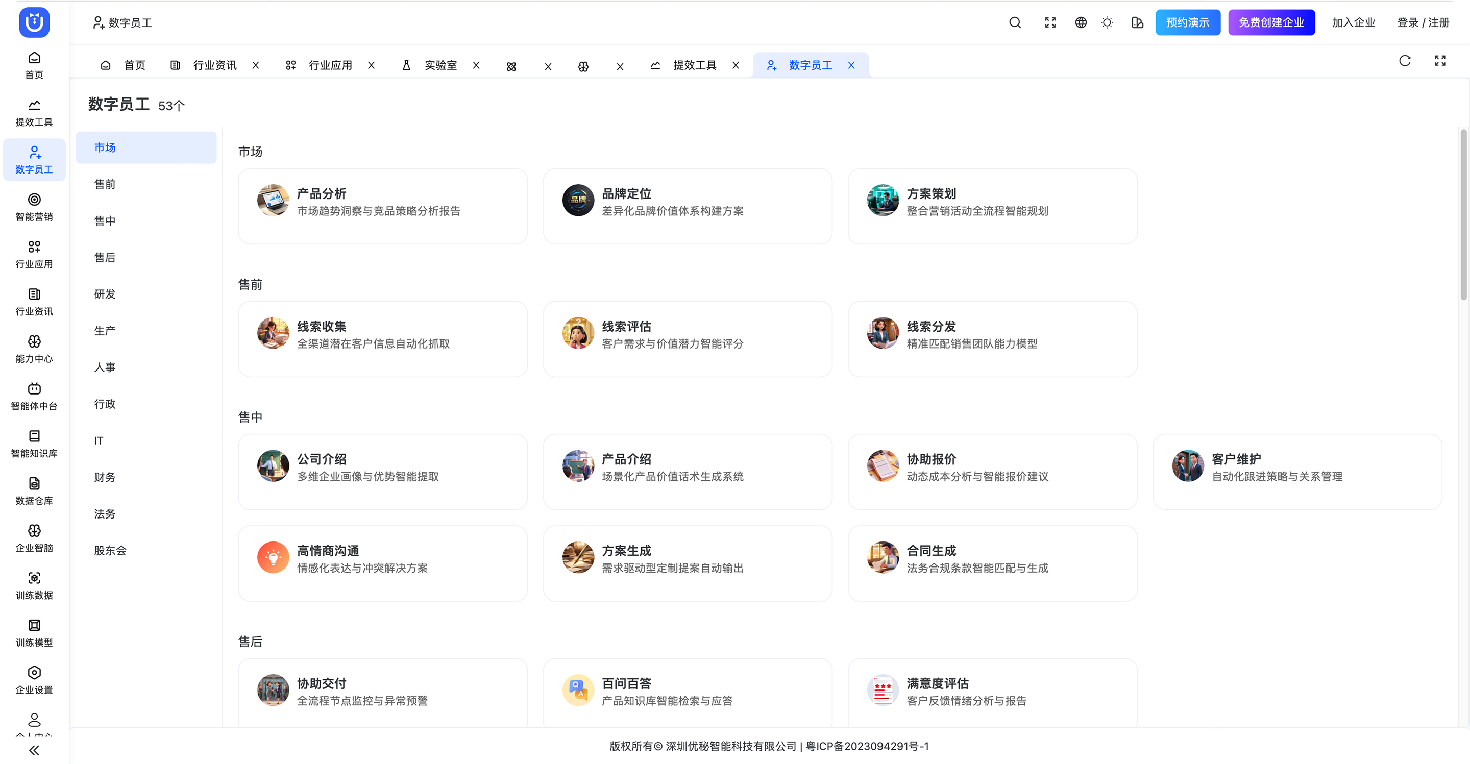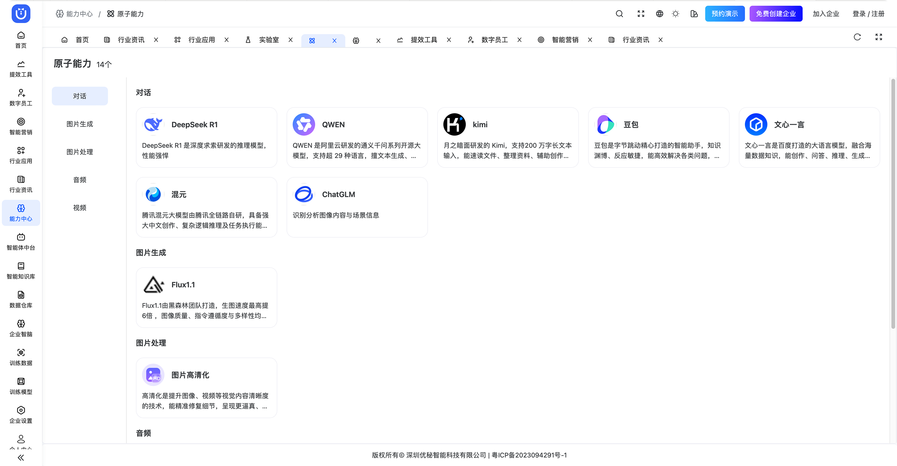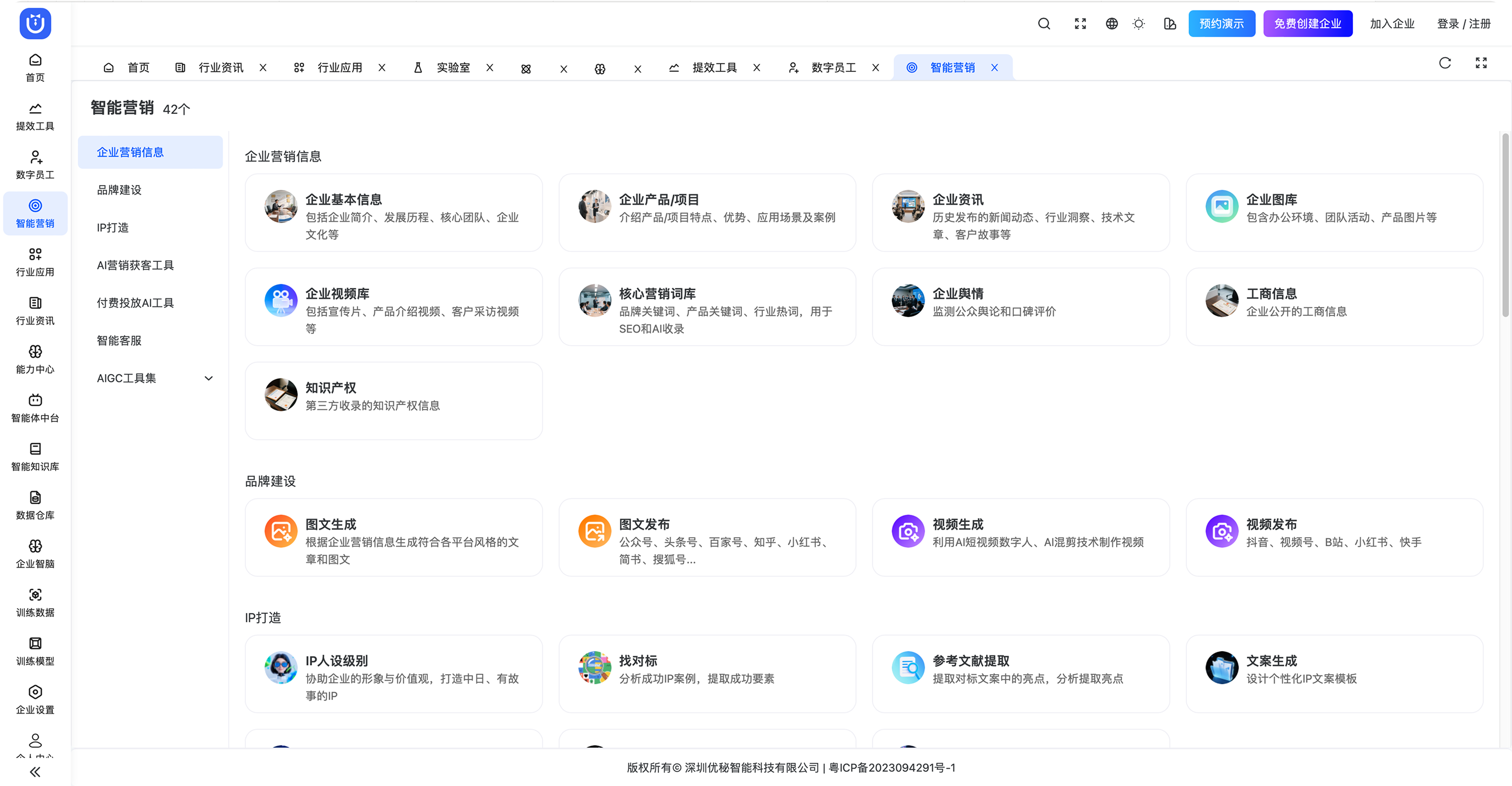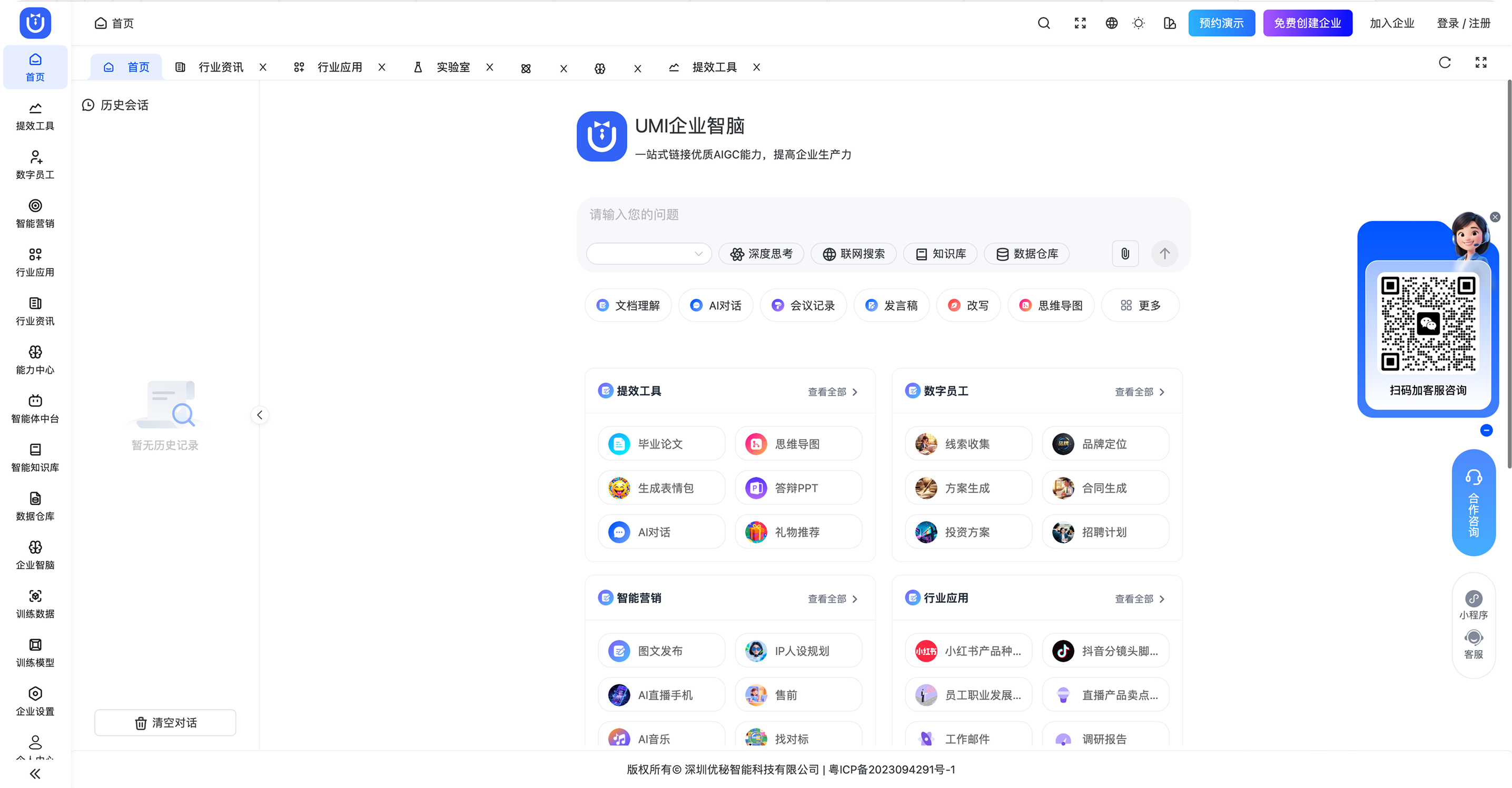 聚焦于AI场景化应用,通过一站式平台链接AIGC能力,解决企业营销、品牌、获客和客服等环节的痛点,实现降本增效。