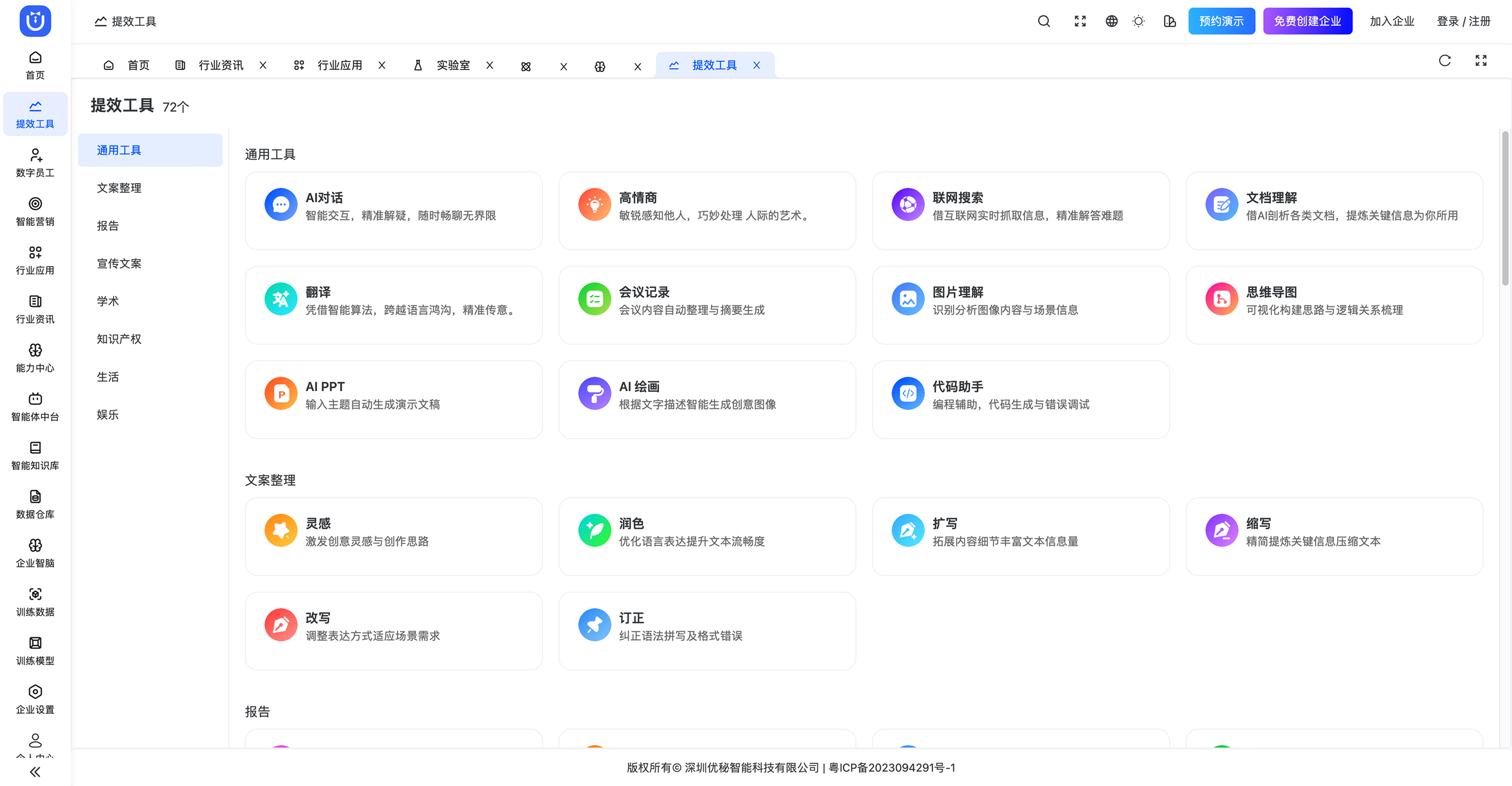 内置全行业通用办公助理,大量专家级写作模型,开箱即用,降本增效。